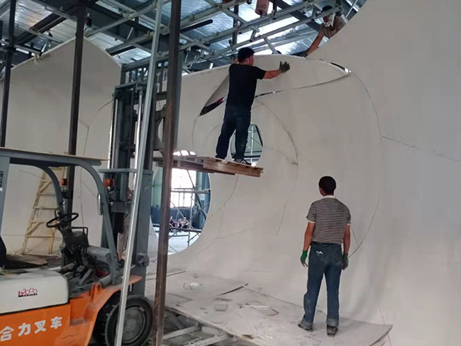 我公司工廠占地面積5000多平方米,公司具有經(jīng)驗(yàn)豐富的產(chǎn)品研發(fā)、設(shè)計(jì)、深化、生產(chǎn)、安裝、管理團(tuán)隊(duì),可為客戶從裝飾設(shè)計(jì)、產(chǎn)品深化設(shè)計(jì)建模、產(chǎn)品生產(chǎn)、現(xiàn)場安裝施工等一整套服務(wù)。